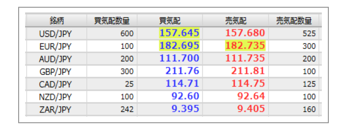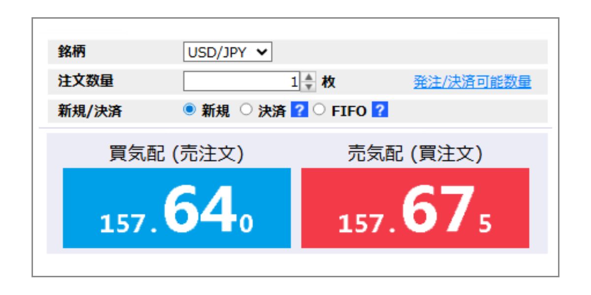 取引画面上に売り買い両方のレートが表示され、そのいずれかの価格部分を直接クリックして発注する注文方法です。実勢に近い水準での約定が期待されますが、注文が失効されることもあります。