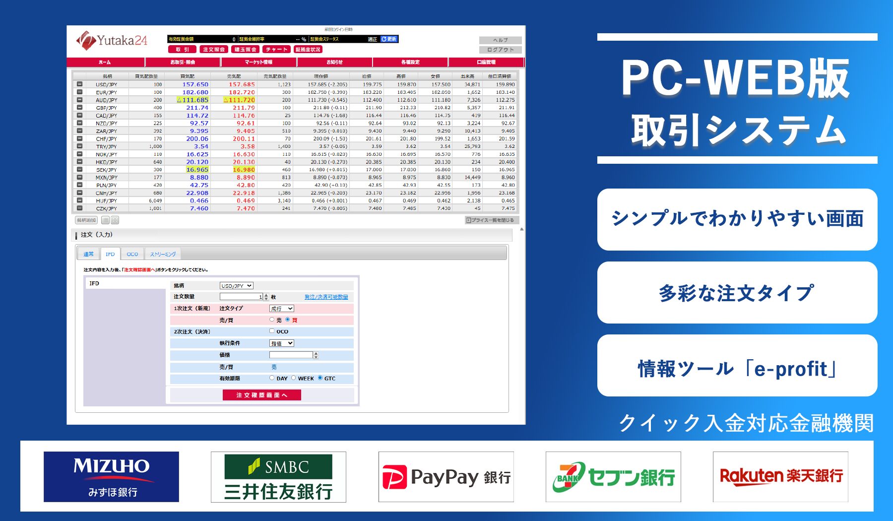 パソコンのブラウザからご利用いただくPC-WEB版は、インストール不要で簡単にお取引を始めていただけます。
