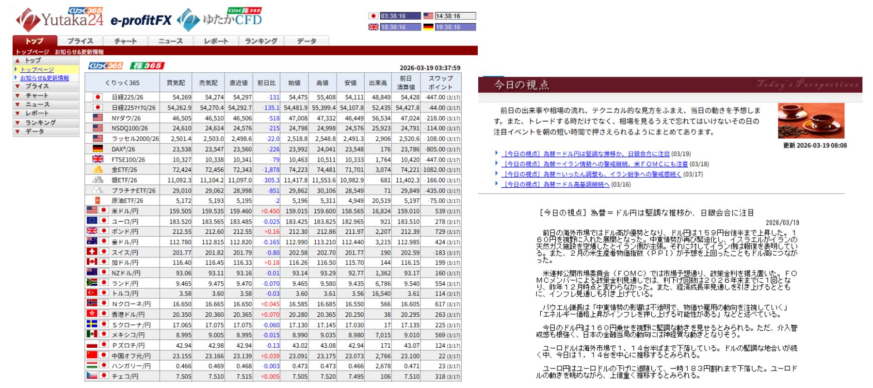 くりっく株365(ゆたかCFD)とくりっく365(Yutaka24)に上場される全銘柄のレートとチャートの閲覧が可能なため、株式相場と為替相場の動向を同時に把握することができます。