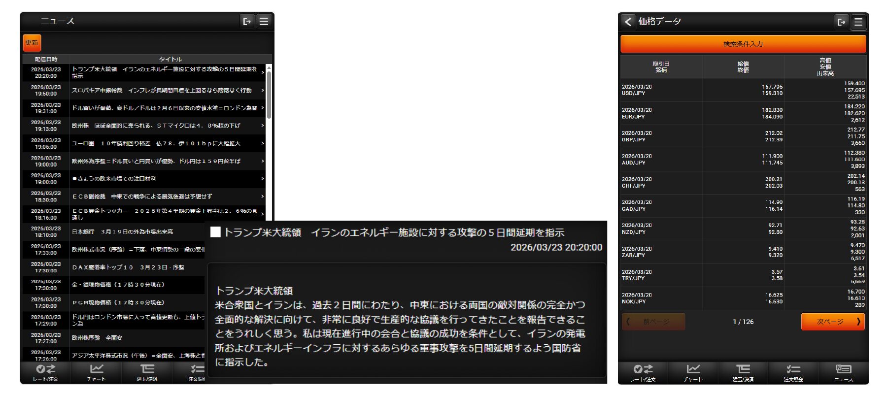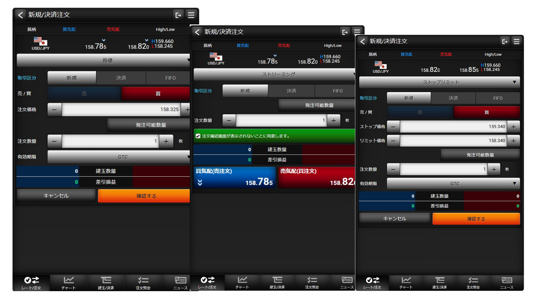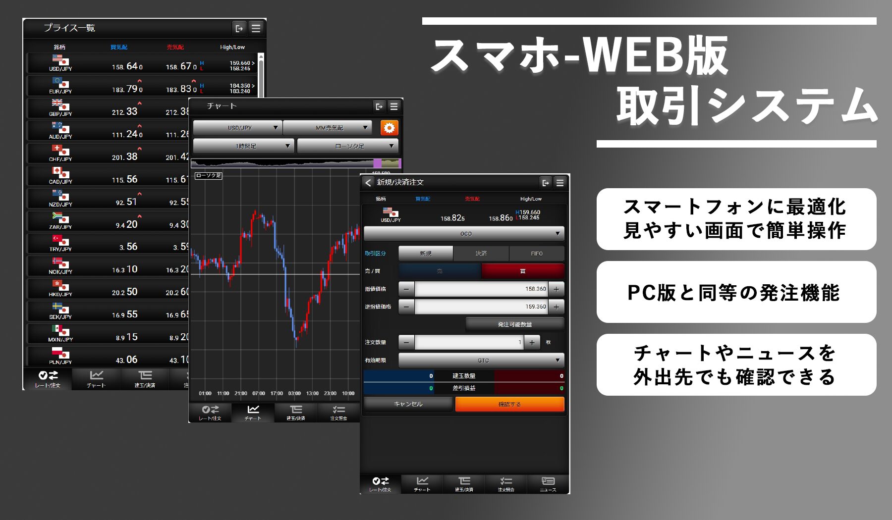 PC版と同等の発注機能を搭載。外出先からでも思い通りのトレードが可能です。