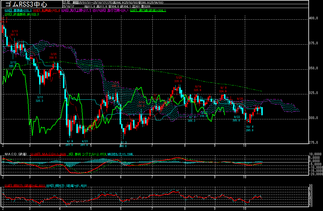 JPXが集計した10月10日時点の生ゴム(RSS)市場指定倉庫在庫は3215トンで、9月30日時点(3114トン)に比べて101トン増加(入庫は685トン、出庫は584トン、前年同時期の在庫は2562トン)。2旬連続で増加しております。