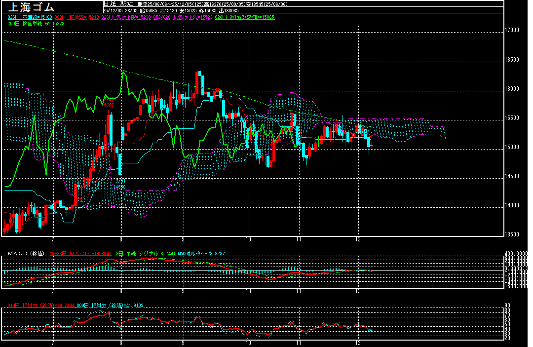先週の上海ゴム(中心限月)は、前週末比345元安の15065元で終了。4週ぶりに下落に転じました。上海期貨交易所(SHFE)の天然ゴム在庫は12月5日時点で前週比7336トン増加の9万3218トンと、2週連続で増加しております。