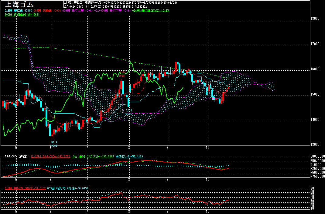 先週の上海ゴム(中心限月)は、前週末比640元高の15335元で終了。反発に転じております。