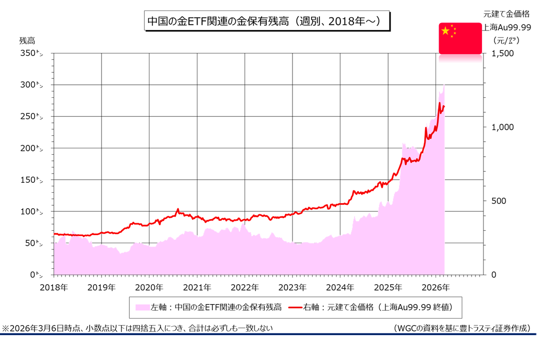 中国の金ETF関連の金保有残高(週別)