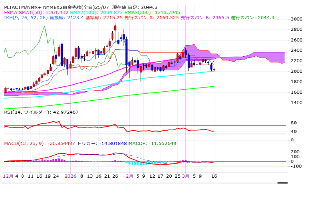 ハメネイ師の後継に同師の次男反米強硬路線とみられているモジタバ・ハメネイ師が選出されたことを受けて、米国とイスラエルによるイラン攻撃が長期化するとの見方から、投資家のリスクオフ姿勢が強まる中、3月9日に2016.6ドルまで下げるも、引き続き節目の2000ドルを維持したことから安値は買い拾われております。
