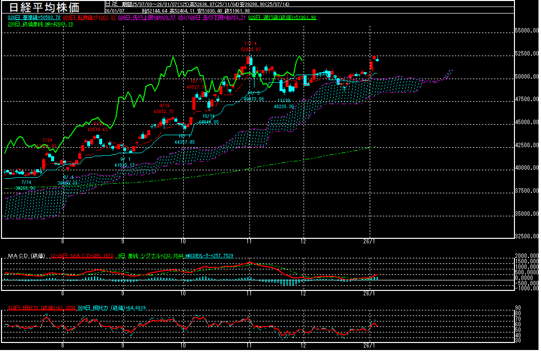 中国政府が日本向けの輸出で軍事転用の可能性がある品目に対して規制を強化すると発表。中国国営の「チャイナ・デイリー」がレアアース(希土類)の輸出規制強化が検討されていると報じたことから、日本企業の業績への影響を懸念した売りが拡がったようです。大発会から2日間で2000円あまり上昇し、前日に昨年10月31日以来の52000円台を回復したことから、、買い方の利喰い売りも出易かった模様。