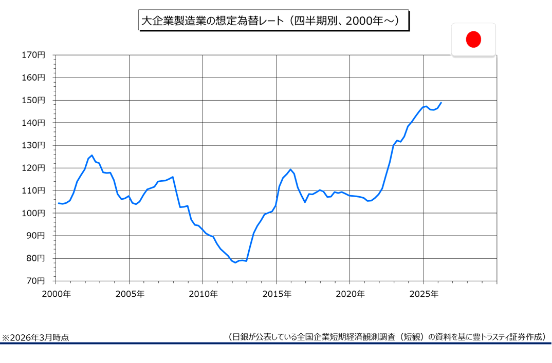 日銀短観:大企業製造業の2026年度想定為替レート