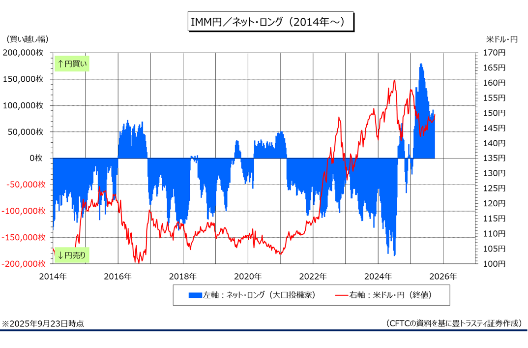 CFTCのデータによると、ヘッジファンドは日銀の早期利上げ観測を背景に円を大幅に買い越していただけに、持ち高整理の円売り・ドル買いの動きも強まったようです。なお、ゴールドマン・サックスは高市氏の自民党総裁就任を受けて、円の買い推奨を取りやめております。