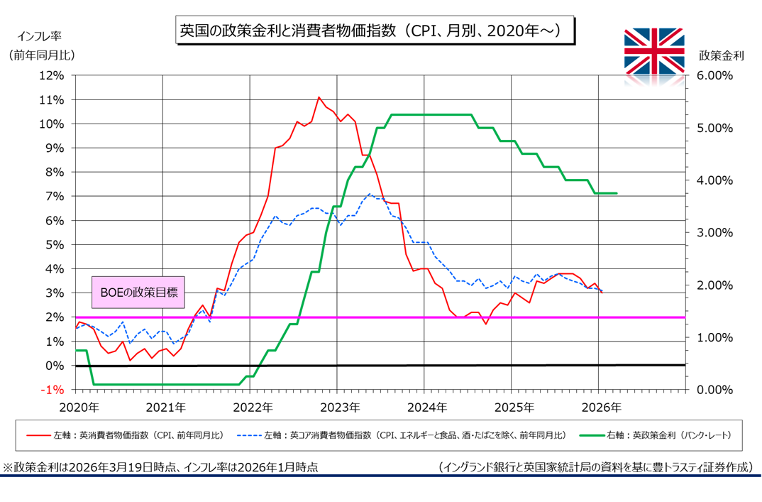 イングランド銀行(BOE、中央銀行)は3月19日に、政策金利を3.75%で据え置くと発表した。据え置きは2会合連続。決定は全会一致でした。