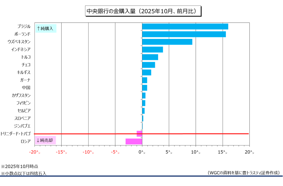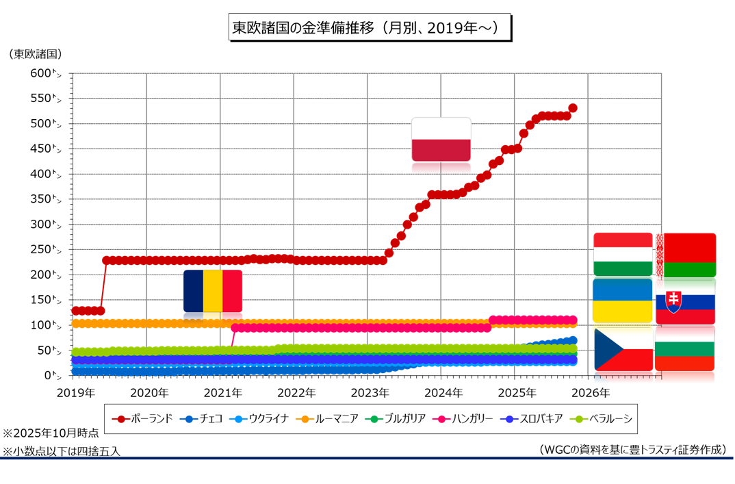 欧州では、ポーランドは同15.6トン増と、5ヶ月ぶりに増加に転じました。チェコは同2.4トン増と、32ヶ月連続で増加。セルビアは同0.5トン増と、6ヶ月連続で増加。キルギスは同1.7トン増と、2ヶ月連続で増加。スロベニアは同0.2トン増と、2ヶ月ぶりに増加に転じました。アゼルバイジャンは増減がありませんでした。