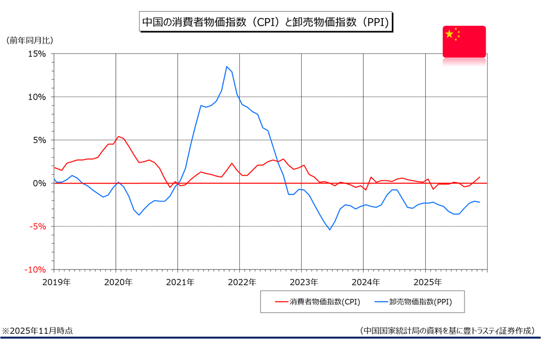 なお、中国共産党は12月8日に習近平総書記(国家主席)が主宰する中央政治局会議を開催し、2026年の経済政策などについて議論。2025年と同様に、「より積極的」な財政政策と「適度に緩和的」な金融政策を引き続き実施していく方針を示しました。なお、今月中に、2026年の経済政策運営に関する基本方針を決める中央経済工作会議が12月中旬に開催される予定。