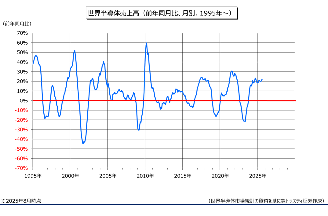 主要半導体メーカーで構成する世界半導体市場統計(WSTS)がとりまとめ、米国半導体工業会(SIA)が発表した8月世界半導体販売額は、前月比4.4%増の648.8億ドルと、6ヶ月連続でプラス。前月(621.4億ドル)を上回り、4ヶ月連続で最高値を更新しております。前年同月比は22.1%増加。サプライチェーン(供給網)の在庫調整が一巡し、半導体需要が復調する中、2023年11月以降、22ヶ月連続でプラスが続いております。