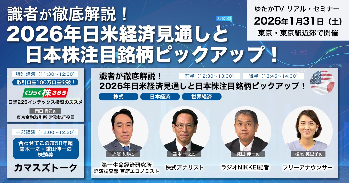 | セミナー名称 | 『識者が徹底解説!2026年日米経済見通しと日本株注目銘柄ピックアップ!』 in 東京 |