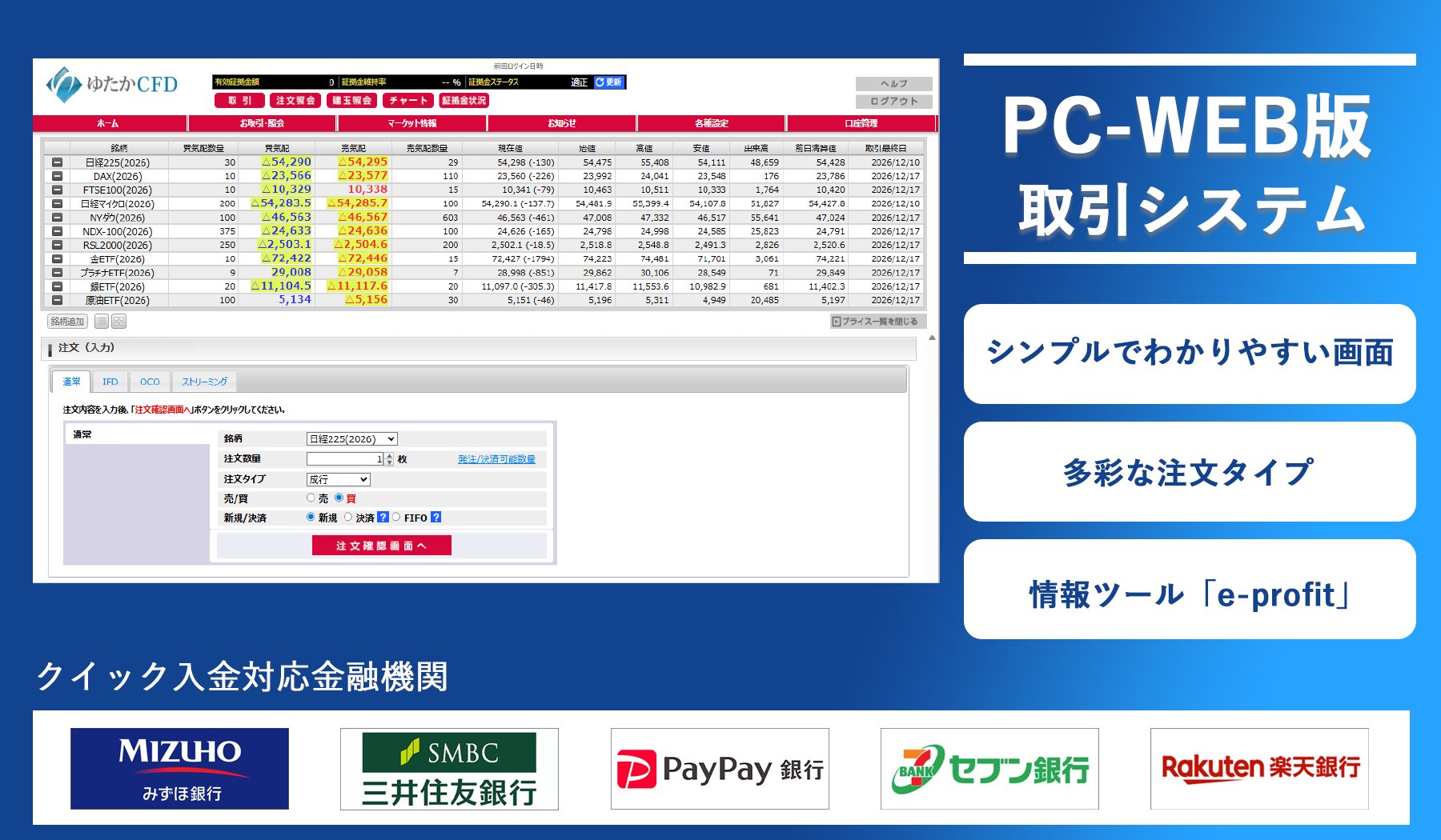 パソコンのブラウザからご利用いただくPC-WEB版は、インストール不要で簡単にお取引を始めていただけます。