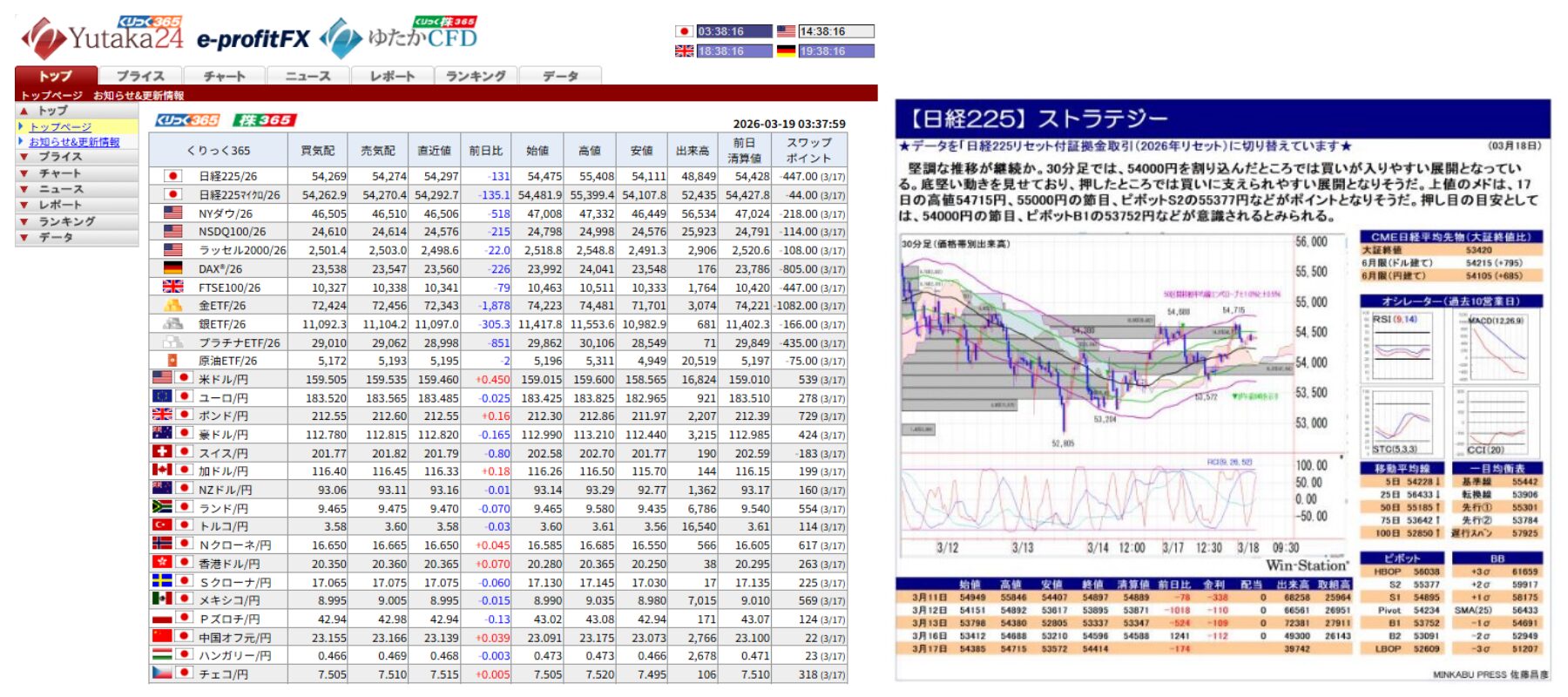 くりっく株365(ゆたかCFD)とくりっく365(Yutaka24)に上場される全銘柄のレートとチャートの閲覧が可能なため、株式相場と為替相場の動向を同時に把握することができます。