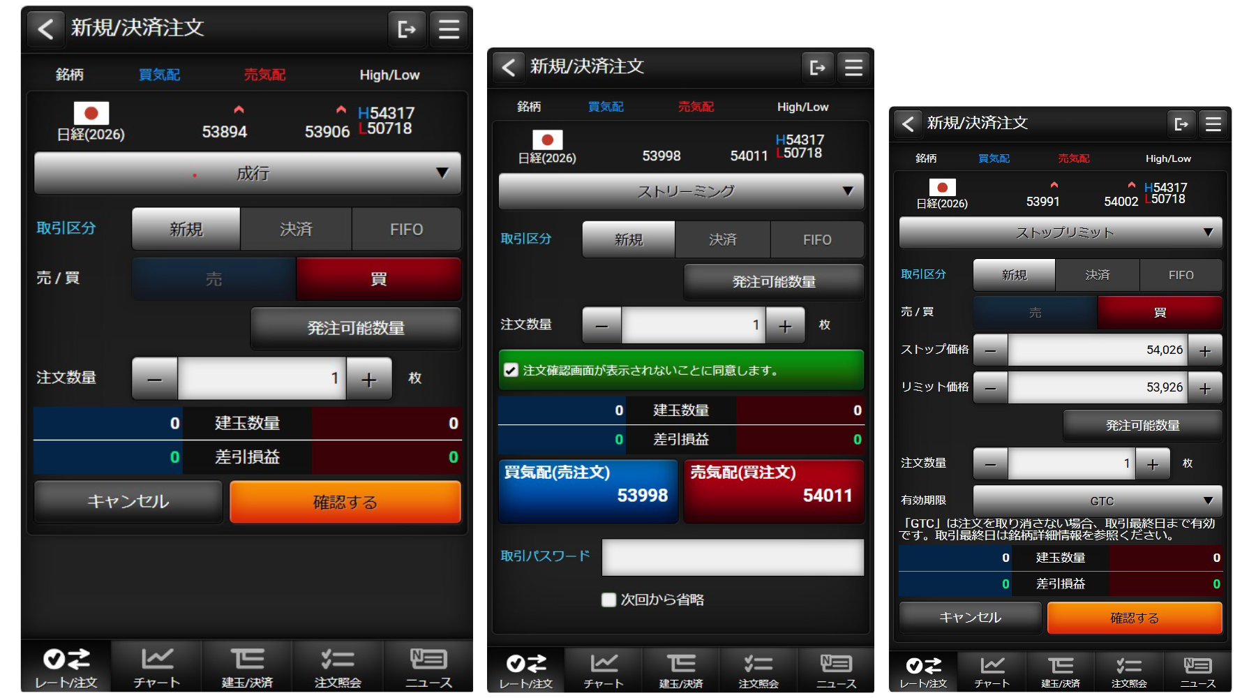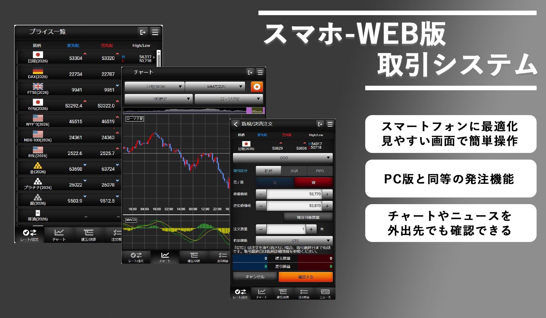PC版と同等の発注機能を搭載。外出先からでも思い通りのトレードが可能です。