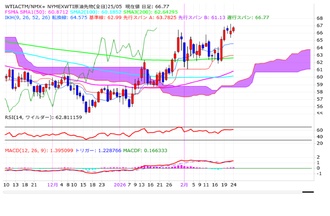 米金融大手ゴールドマン・サックスは2月22日付レポートで、2026年10-12月期の原油価格について、ブレント原油は1バレル=60ドル、WTI原油は56ドルと予測。従来見通しから、それぞれ6ドル引き上げております。経済協力開発機構(OECD)加盟国の原油在庫が予想を下回っていることが理由。一方で、イラン関連の供給混乱は起きないとの見方を示しました。2026年は供給過剰になるとの見方を維持しております。