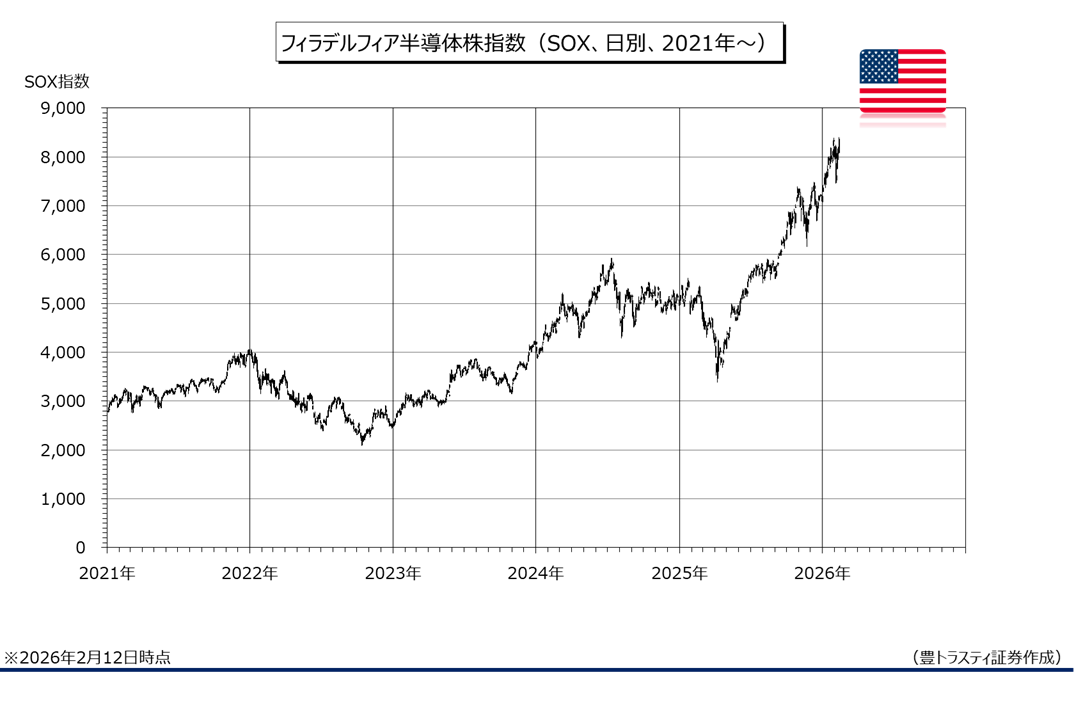 AIリスクを背景とした売りは一服しつつあるものの、これまで市場を牽引してきた巨大ハイテク株が上昇の勢いを取り戻すことには、慎重な見方が多い模様。そのため、来週は2月25日に発表されるエヌビディアの2025年11月〜2026年1月期決算が注目されそうです。