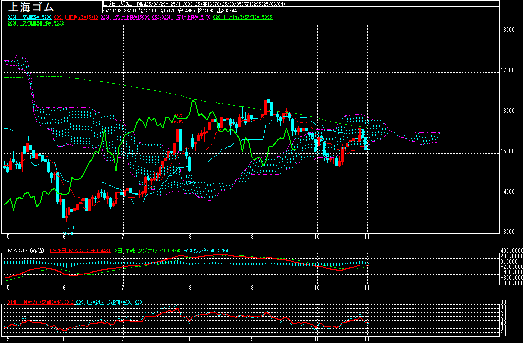 先週の上海ゴム(中心限月)は、前週末比250元安の15085元で終了。下落に転じております。