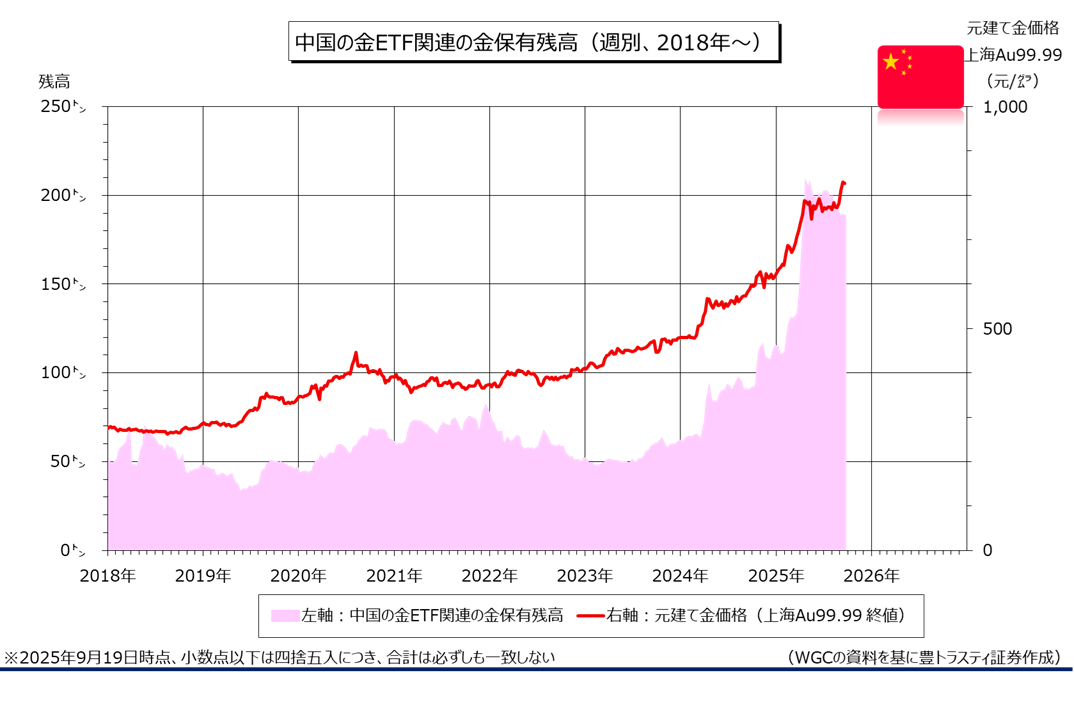 中国の金ETF関連の金保有残高(週別)