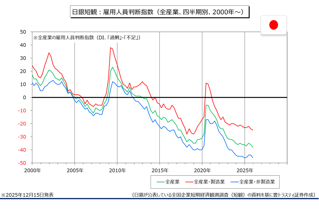 日銀短観:雇用人員判断