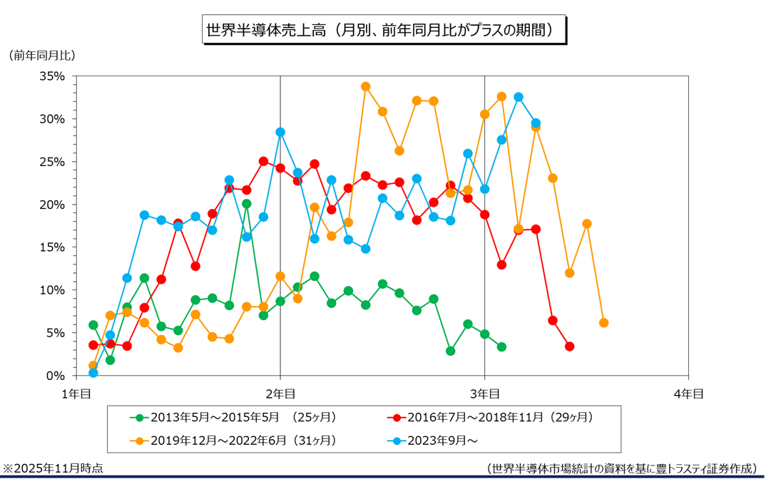 前年同月比は30.6%増加。サプライチェーン(供給網)の在庫調整が一巡し、半導体需要が復調する中、2023年11月以降、25ヶ月連続でプラスが続いております。