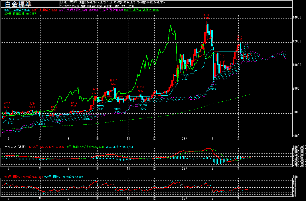 白金標準(期先)は前営業日比44円高の11079円で終了となり、続伸。