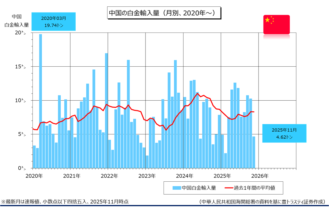 検索用/プラチナ、中国プラチナ輸入量