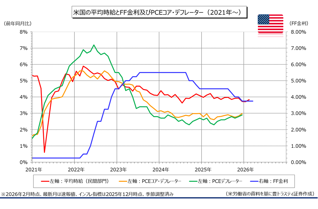 米労働省が3月6日に発表した2月米雇用統計(季節調整済み)によると、景気動向を敏感に反映する非農業部門就業者数は前月比9.2万人減と、前月(改定値、12.6万人増)から急減。市場予想(5.9万人増)も大幅に下回りました。なお、昨年12月分は4.8万人増から1.7万人減、1月分は13.0万人増から12.6万人増に、それぞれ下方修正され、FRBが重視する3ヶ月平均は3.6万人増となっております。