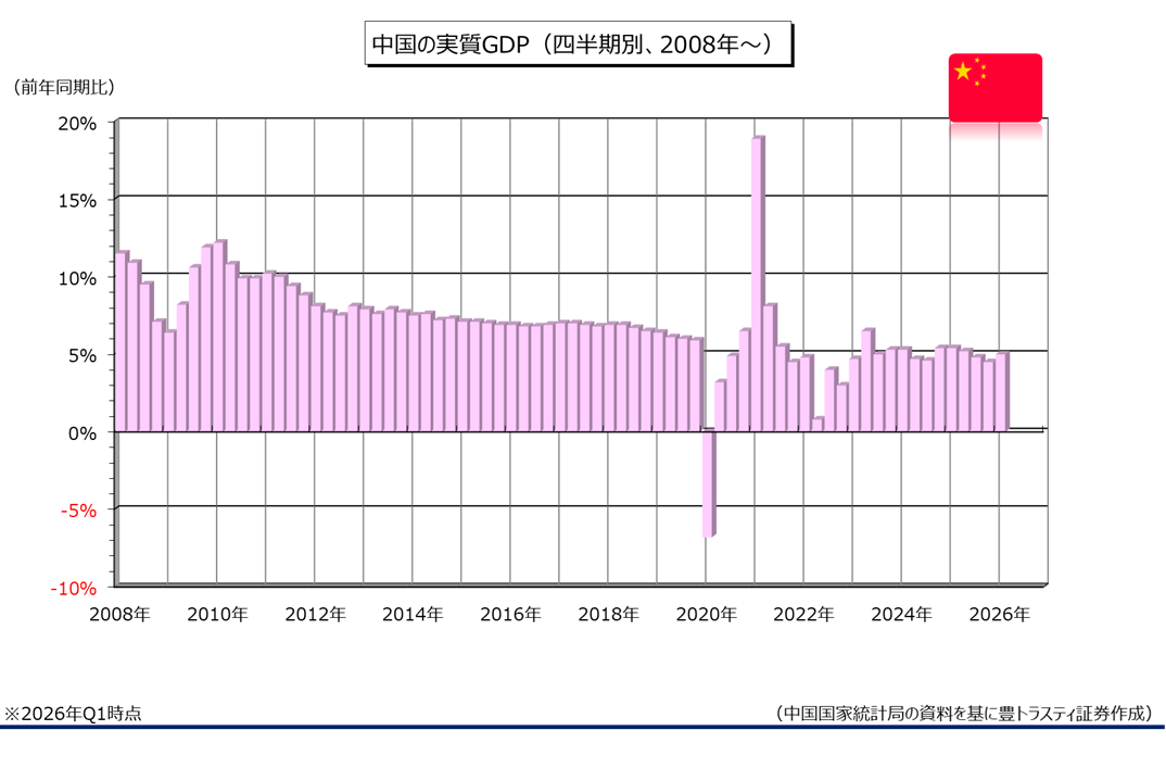 一方で、2026年1-3月期中国鉱工業生産は前年同期比6.2%増と、2025年通年(前年比35.9%増)から加速。輸出も前年同期比14.7%増となっております(2025年通年は前年比5.5%増)