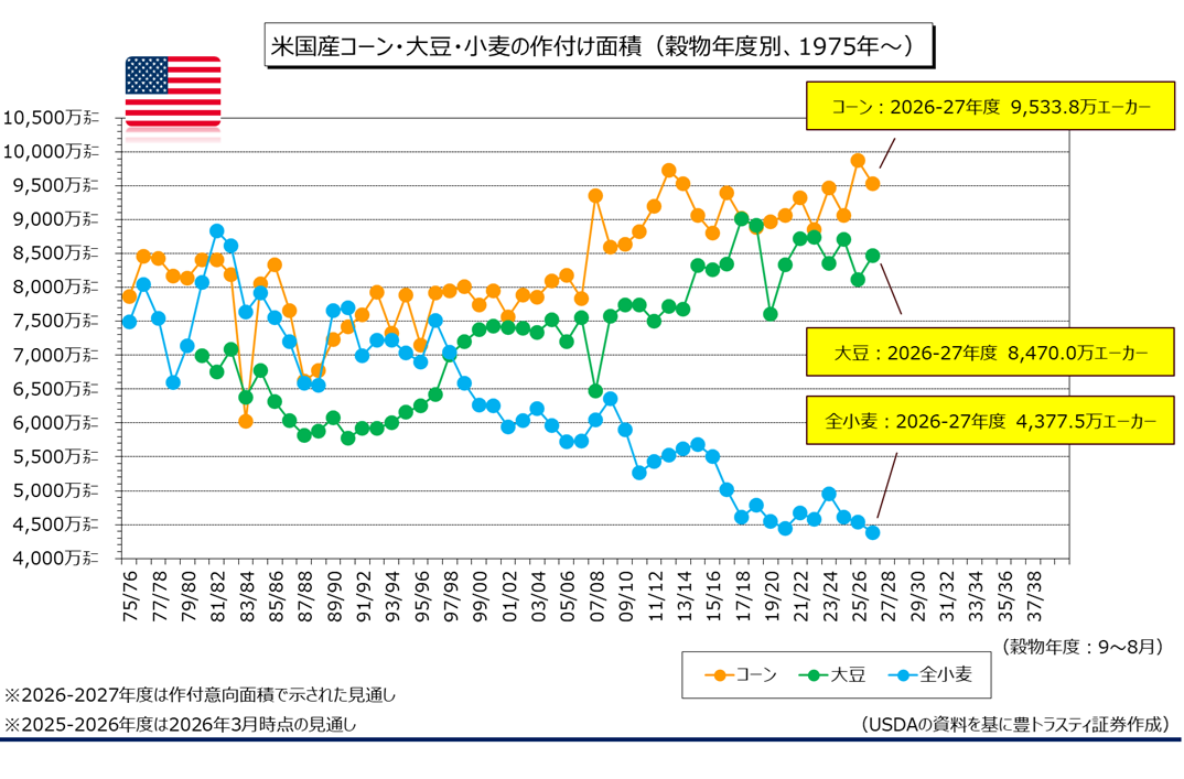 米農務省(USDA)は3月31日に、2026年米農産物の作付意向面積報告を発表。