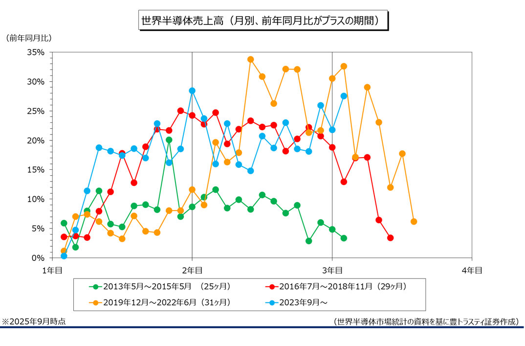 前年同月比は25.6%増加。サプライチェーン(供給網)の在庫調整が一巡し、半導体需要が復調する中、2023年11月以降、23ヶ月連続でプラスが続いております。
