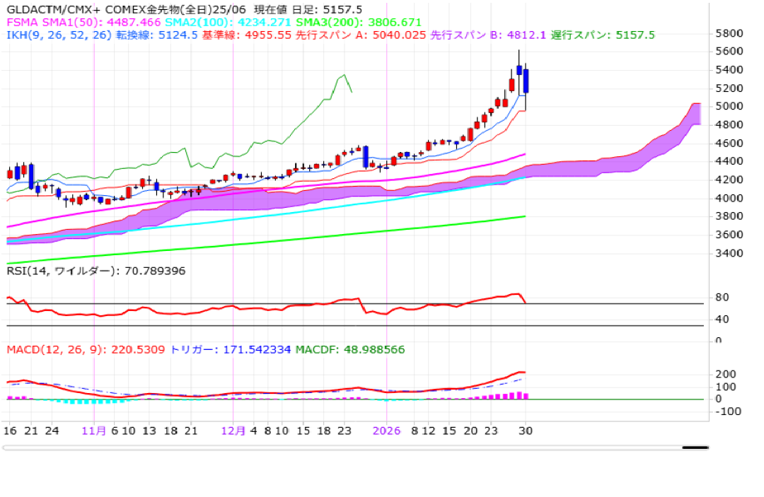 ただ、急ピッチな上昇に対する警戒感が強まる中、ドル安が一服したことを受けて現在取引中の時間外取引は急落しております。トランプ米大統領がFRBの次期議長人事を30日に公表することを明らかにし、米ブルームバーグ通信はケビン・ウォーシュ元FRB理事が指名されると報じました。次期FRB議長の候補の中で、ウォーシュ氏はタカ派寄りとみられていることから、ドルが主要通貨に対して反発に転じているようです。米連邦政府機関が再び閉鎖される事態が回避される見通しとなったこともドル買いにつながった模様。